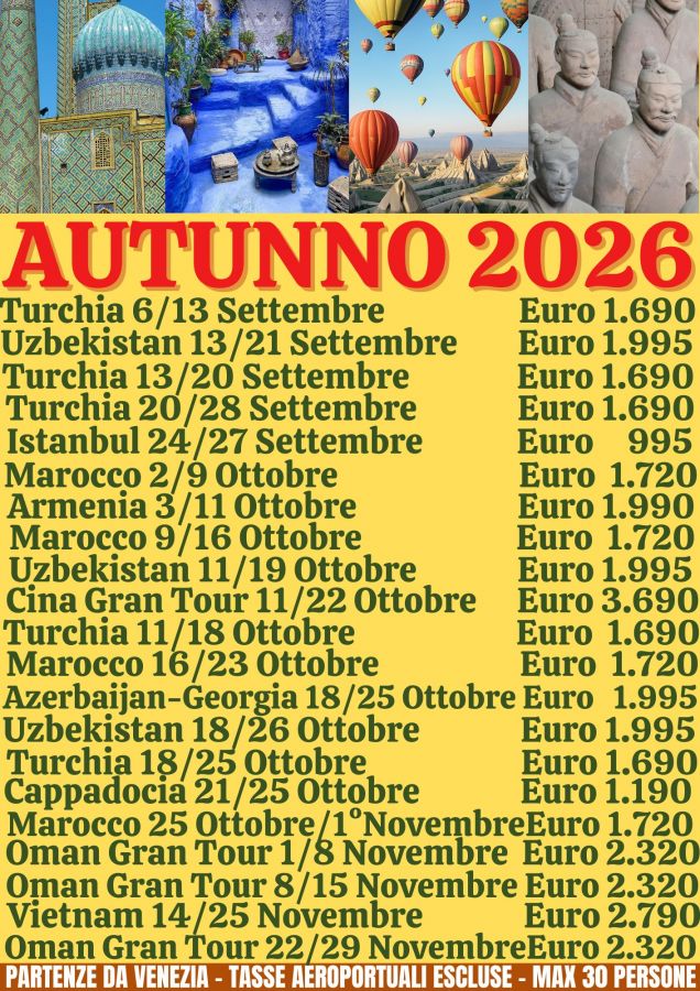 AUTUNNO 2026 >> PARTENZE GARANTITE CON GUIDA IN ITALIANO